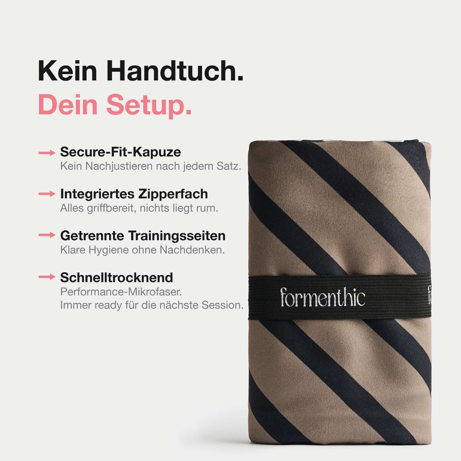 Das formenthic Gym Towel löst genau das mit einem durchdachten System, das im Studio entwickelt und getestet wurde. Kein Kompromiss. Kein Chaos. Nur Training.